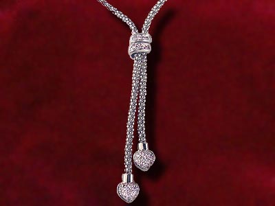 14K Gold Heart Lariet with .30Pts Genuine Diamonds Size of hearts is approximately 9mm