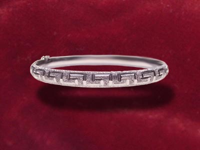 14K Gold Greek Key Design Bangle available in 7" and 5½" Baby Sizes.